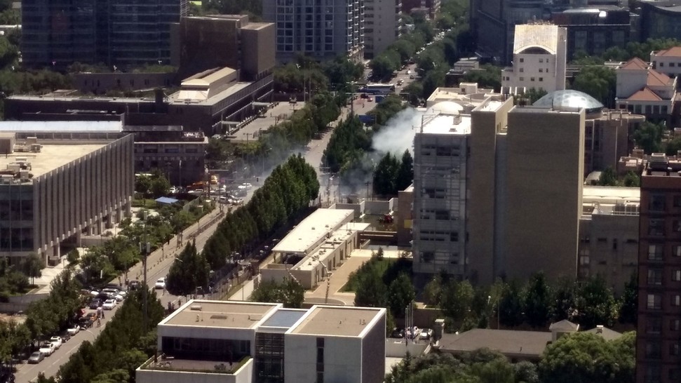 Pelaku luka-luka saat meledakkan bom di kawasan publik di Kedutaan AS di Beijing, Kamis (26/7). Baca Kelanjutan FOTO: Ledakan Bom di Kedubes AS Beijing : https://ift.tt/2LrHIIE
