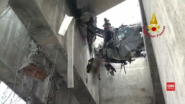 Jakarta, CNN Indonesia -- Petugas pemadam kebakaran Italia melakukan penyelamatan dramatis pada Selasa (14/8), saat mengevakuasi korban yang terperangkap di reruntuhan mobilnya yang menggantung akibat ambruknya jembatan jalan tol di Genoa.Hingga Rabu (15/8), korban jiwa akibat tragedi runtuhnya jembatan jalan tol di Genoa, Italia tersebut mencapai 39 orang.
