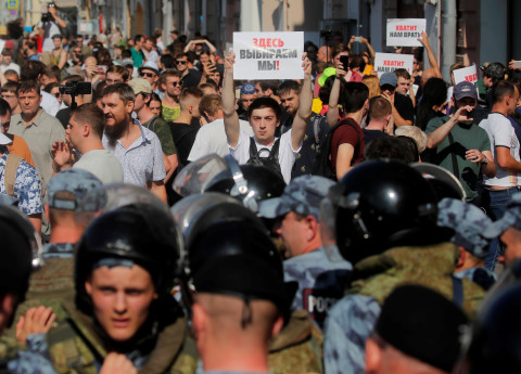 Krievijas opozīcija sestdien Maskavā pie mērijas un Trubnajas laukumā rīkoja nesankcionētas protesta akcijas pret varasiestāžu atteikumu reģistrēt neatkarīgos kandidātus septembrī paredzētajām galvaspilsētas domes vēlēšanām.