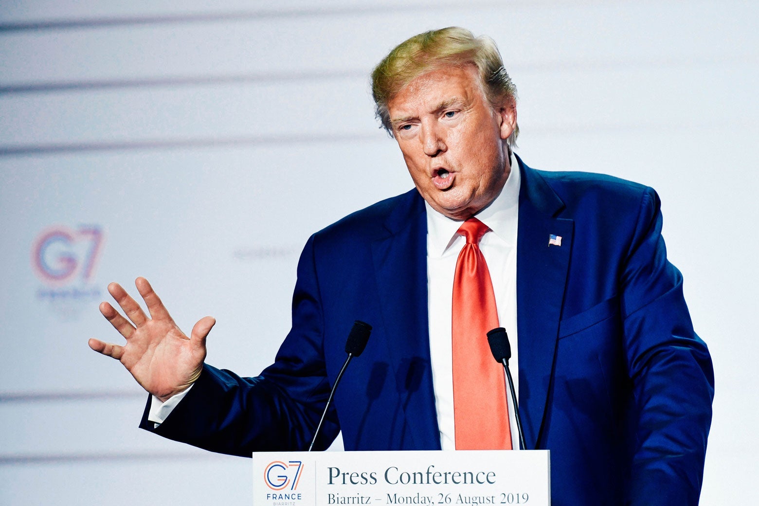 Donald Trump gives a press conference at the G-7 summit in Biarritz, France, on Monday.