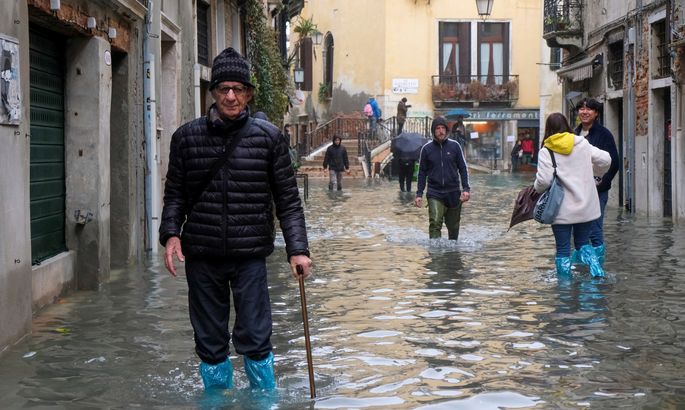 Itālijas pilsētu Venēciju otrdien piemeklēja plūdi, kuros ūdens sasniedza augstāko līmeni vairāk nekā 50 gadu laikā, un tūristi brida pa applūdušajām ielām, meklējot patvērumu.