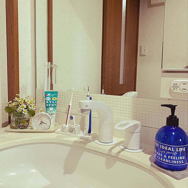 ハンドソープや洗剤などは、洗面所に欠かせないアイテムのひとつ。市販のものは生活感が出てしまうものも多く、ランクUPのためには工夫が必要です。ユーザーさんたちは、詰め替えボトルを使用したり、センスのいい石けんを取り入れたりと、スタイリッシュな洗面所づくりを実践しています。